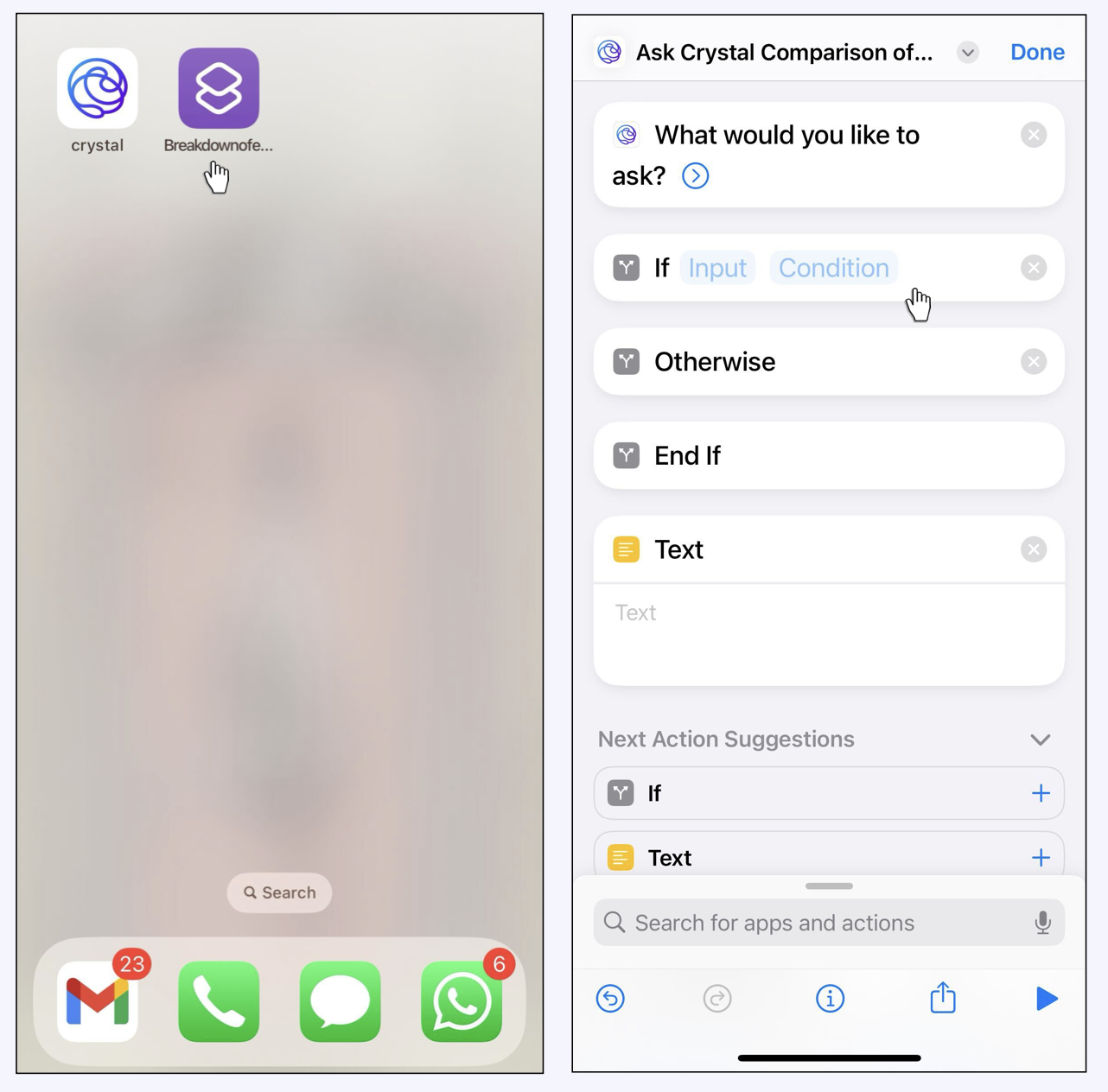 Since this is an independent app, you can also add Shortcuts *to Crystal or to Topics* from the **Shortcut app** on your iPhone or iPad itself.&#x20;