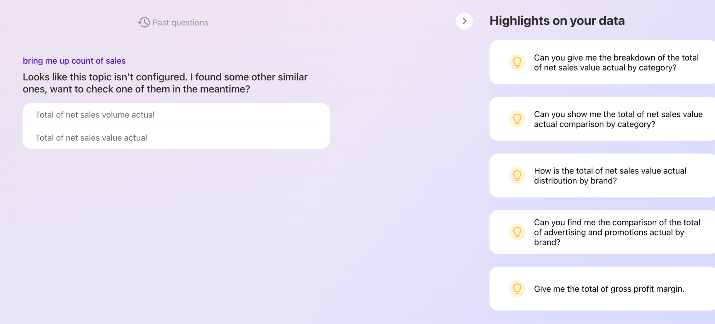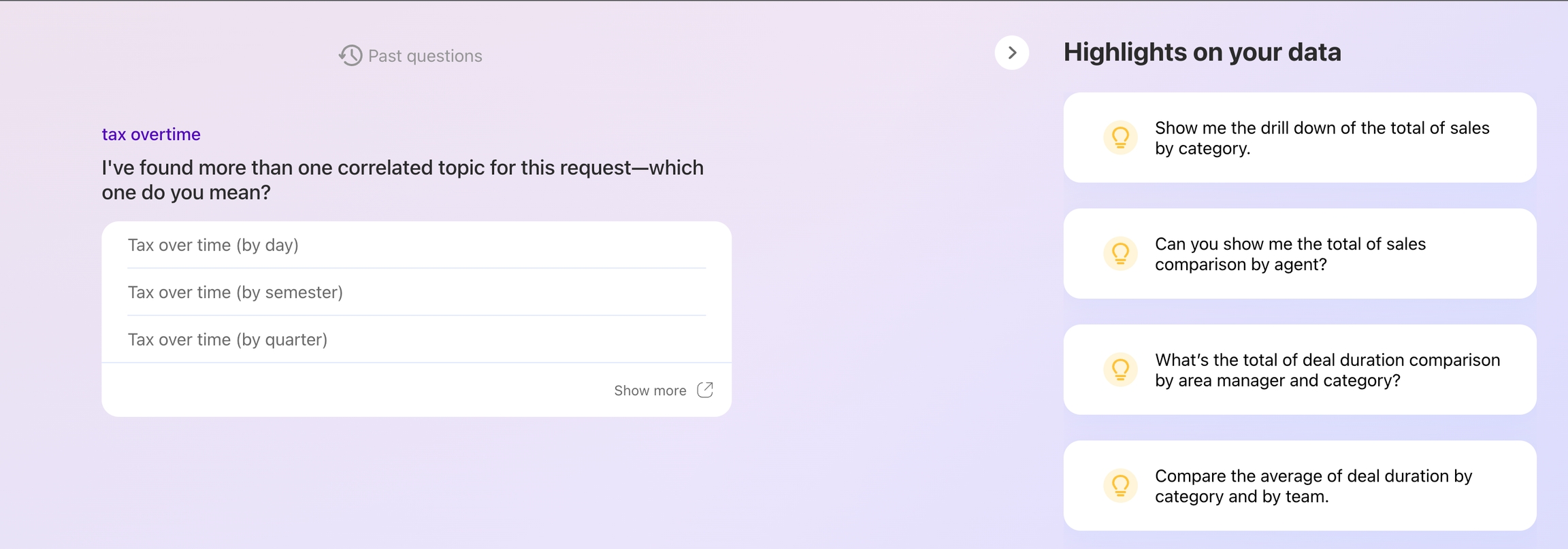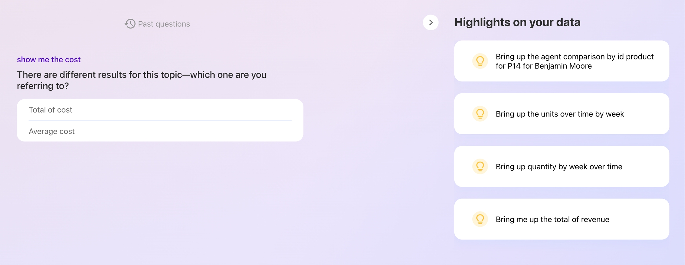 If your Project's Entities, Filters, Objectives, or even entire Topics are too similar, Crystal will automatically detect those ambiguities when they come up in a question.