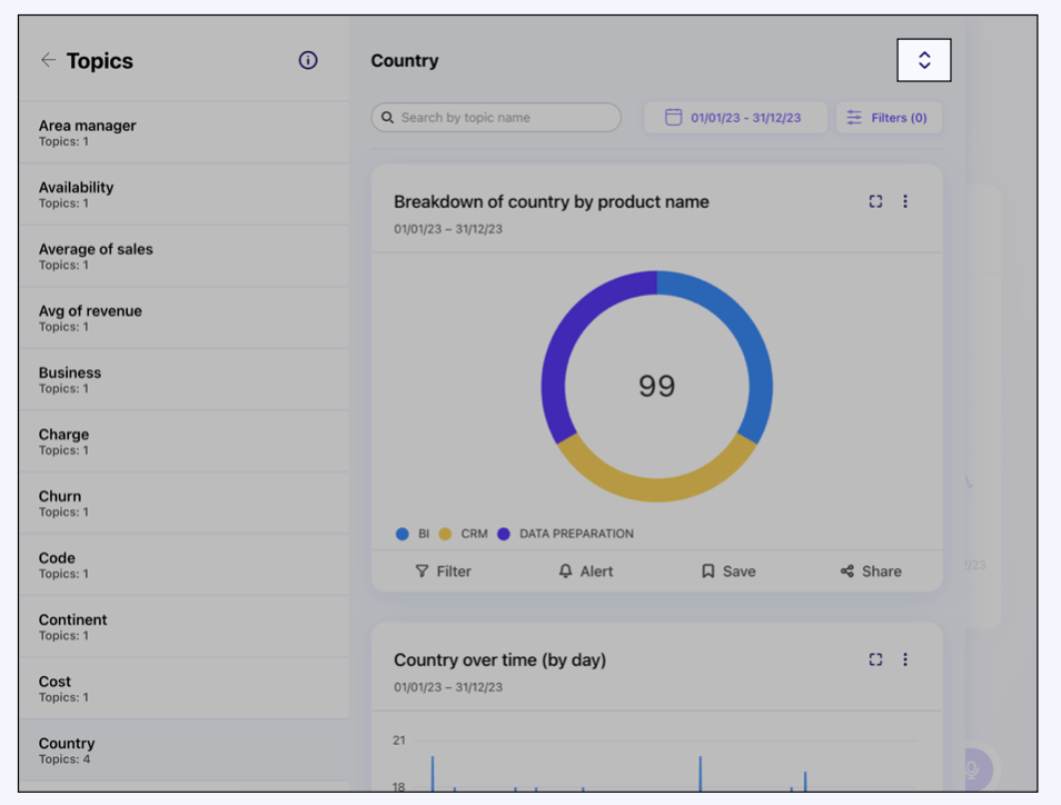 * Sia i Topic che i Filtri mostrati in questa sezione dipendono dai permessi di visualizzazione impostati per il tuo account dall'Admin