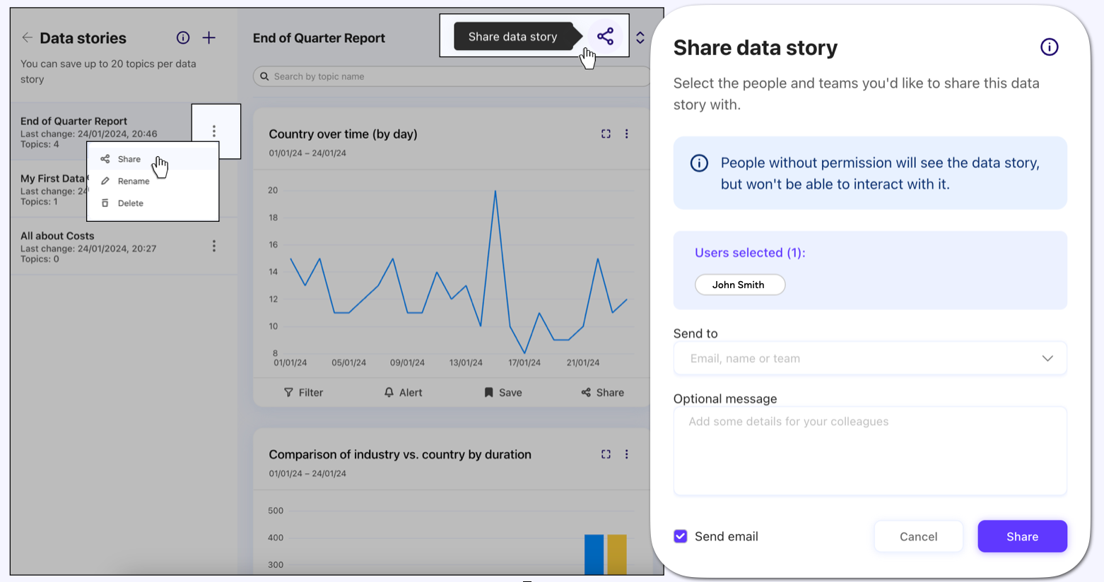 * scegli uno o più destinatari e la Data Story è immediatamente condivisa!