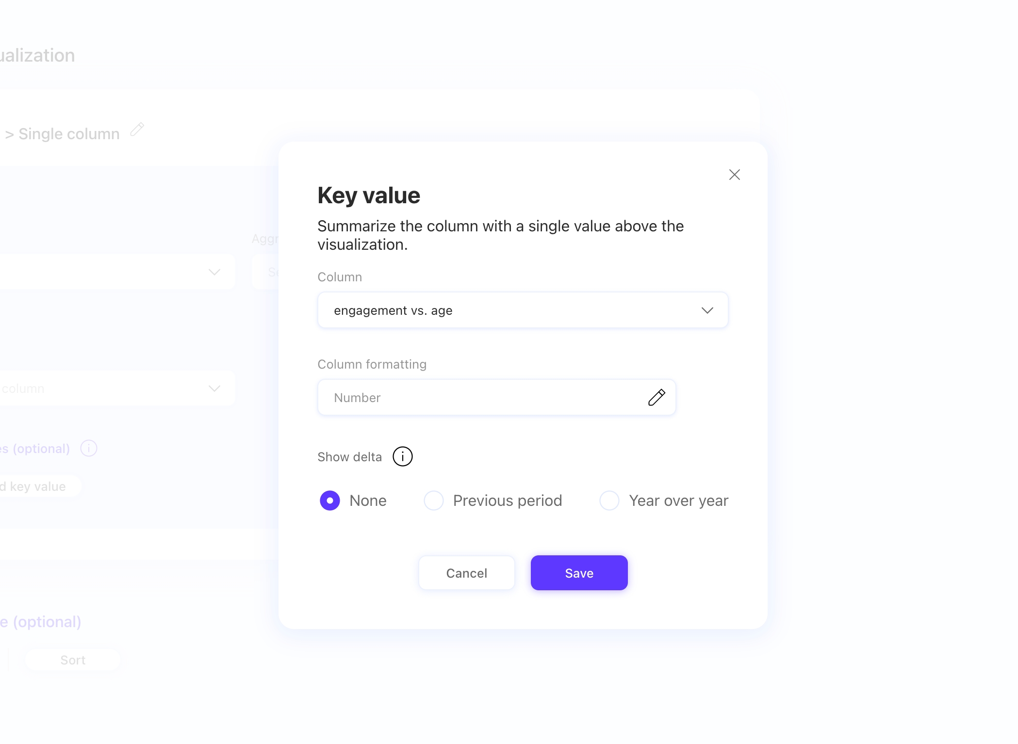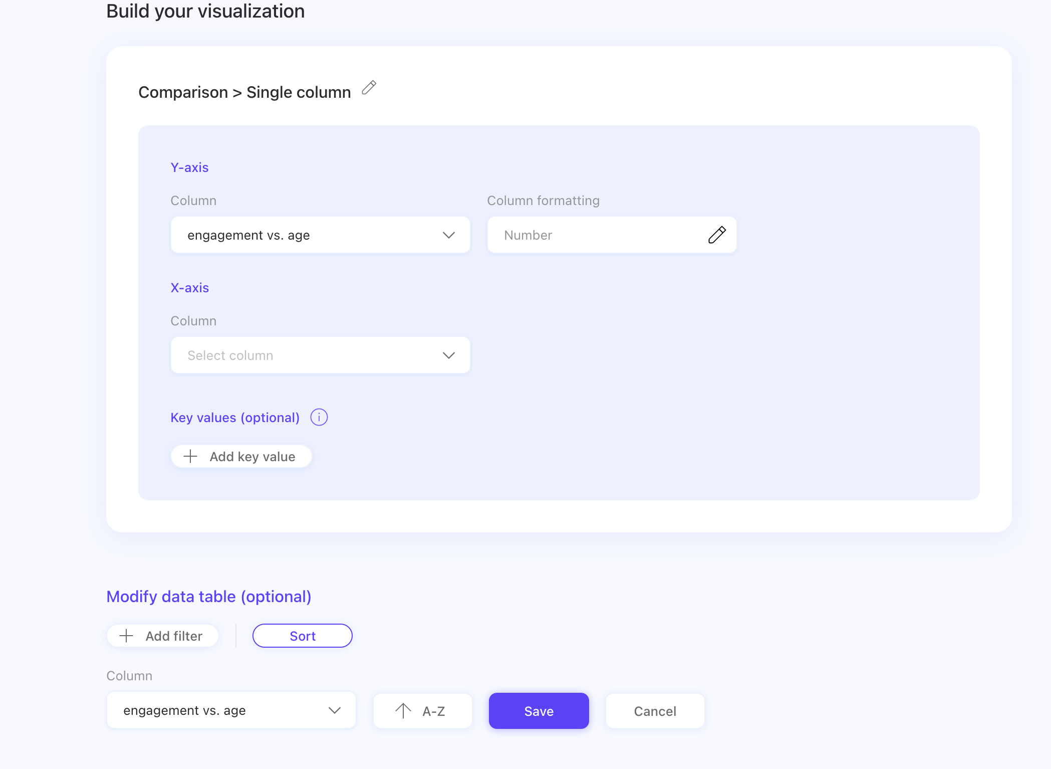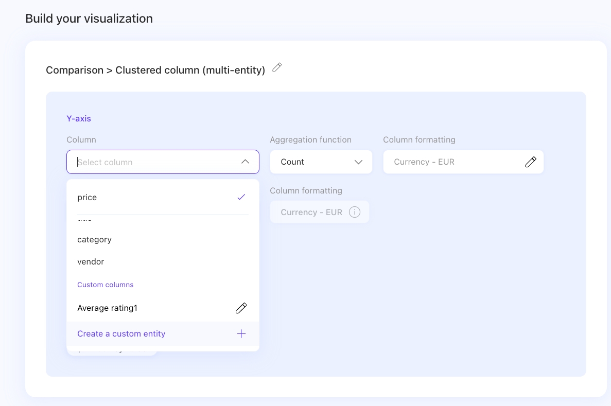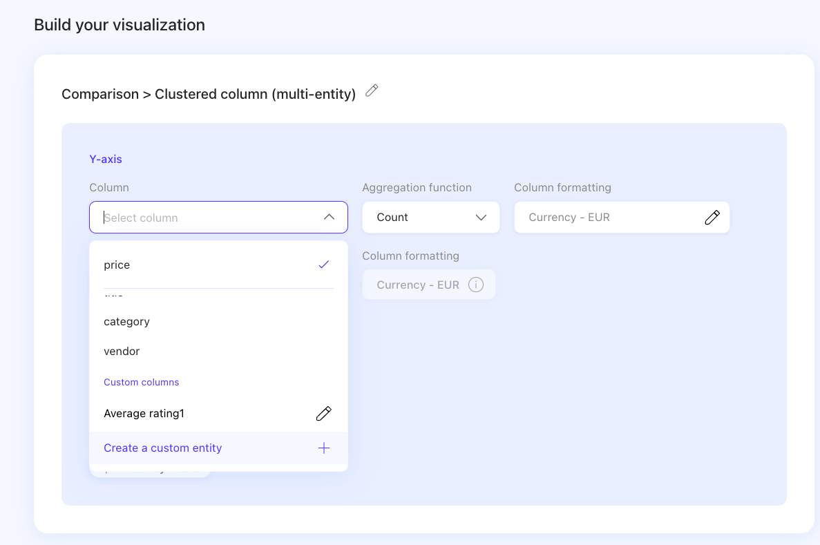 In fase di configurazione del topic potresti voler personalizzare la colonna principale (asse Y). Per creare un'entità personalizzata, apri il menù Column, quindi seleziona Create a custom entity:
