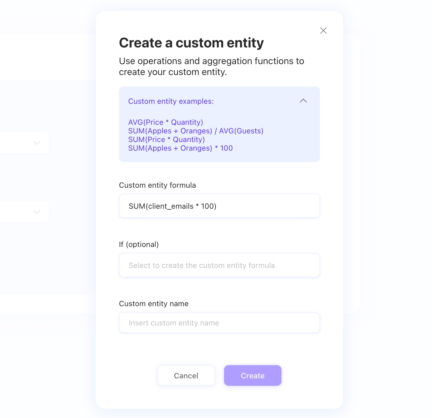 Si aprirà una nuova finestra in cui potrai creare la formula dell'entità personalizzata, aggiungere condizioni e, ovviamente, inserire il nome dell'entità: