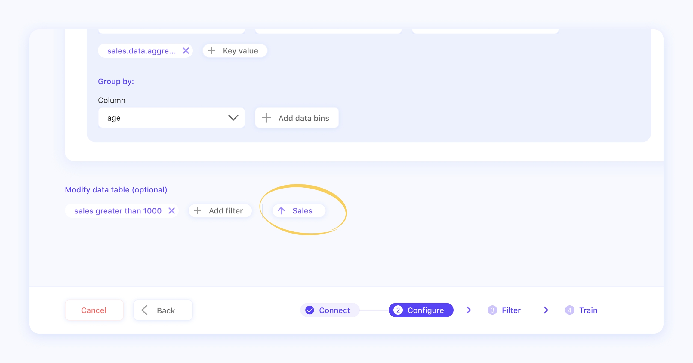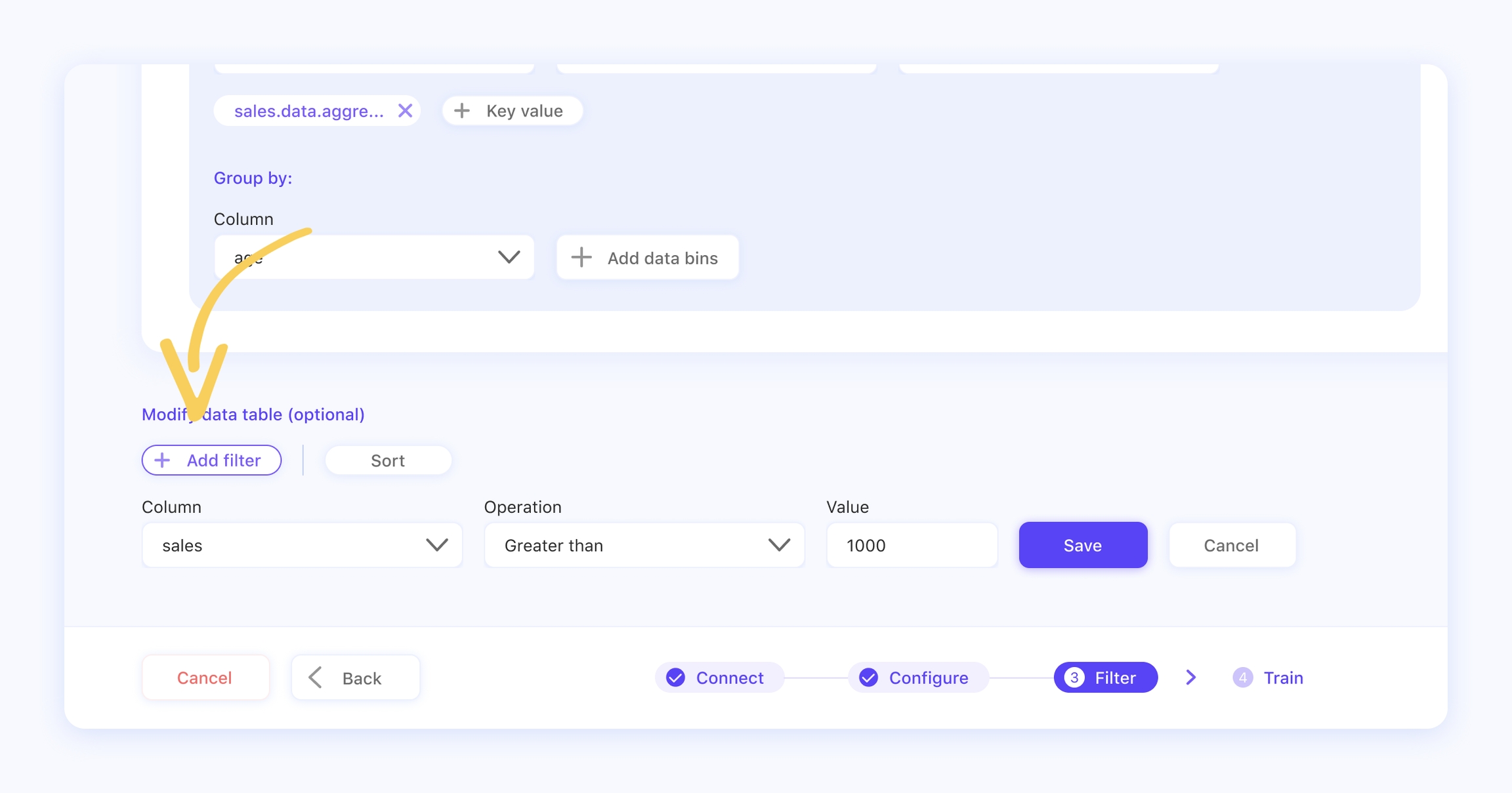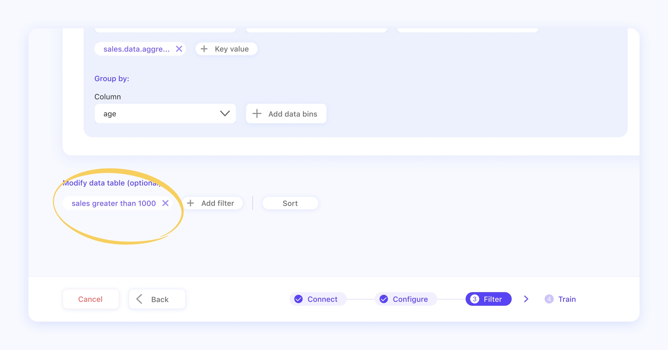 Per controllare in tempo reale gli impatti che i filtri hanno sulla tabella dati, clicca su Preview data in alto a destra.