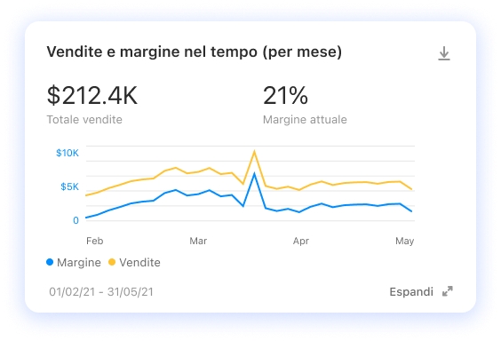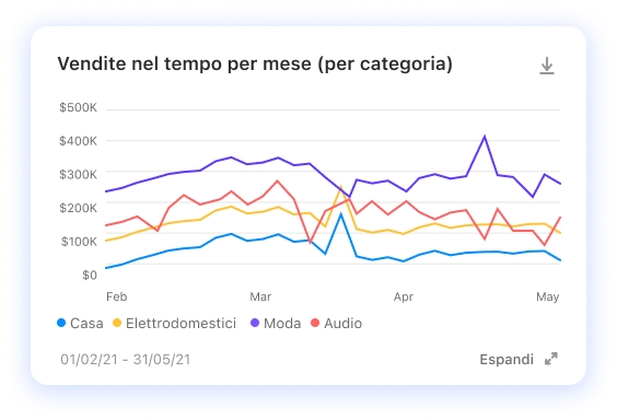 Mostra l’evoluzione dei dati in un dato periodo di tempo, es. Puoi mostrarmi l’andamento delle vendite per gli ultimi tre mesi?
