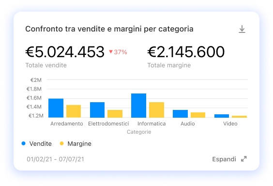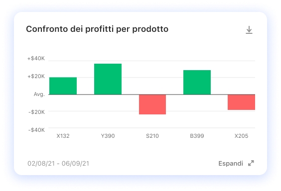 Viene usato per mostrare, stimare, misurare o individuare le somiglianze e le discrepanze tra diversi elementi o contesti, es. Qual è il confronto tra vendite e margini per categoria?