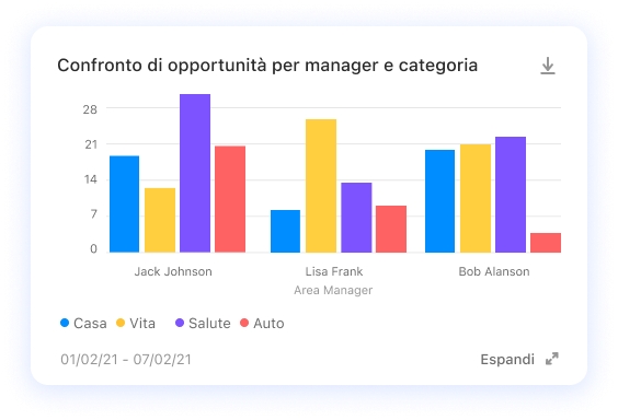Ogni obiettivo può essere rappresentato con una o più visualizzazioni dati specifiche che aiutano gli utenti a interpretare al meglio gli insight tratti dai dati.