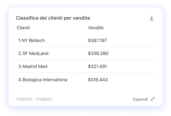 Mostra il posizionamento di diversi elementi ordinati, es. Quali sono stati i migliori venditori negli ultimi tre mesi?