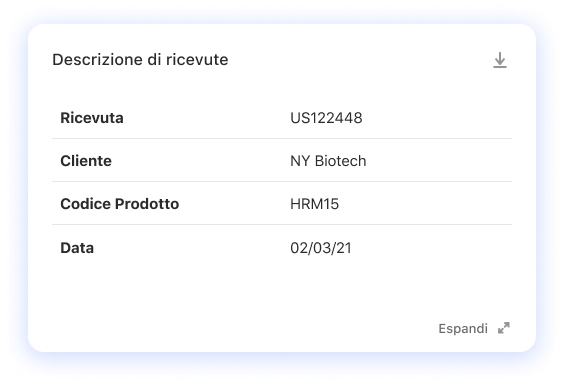 Una scheda o un modulo con i dettagli di un elemento o un’entità, es. Dammi i dettagli di prodotto per l’articolo X3 sneakers.