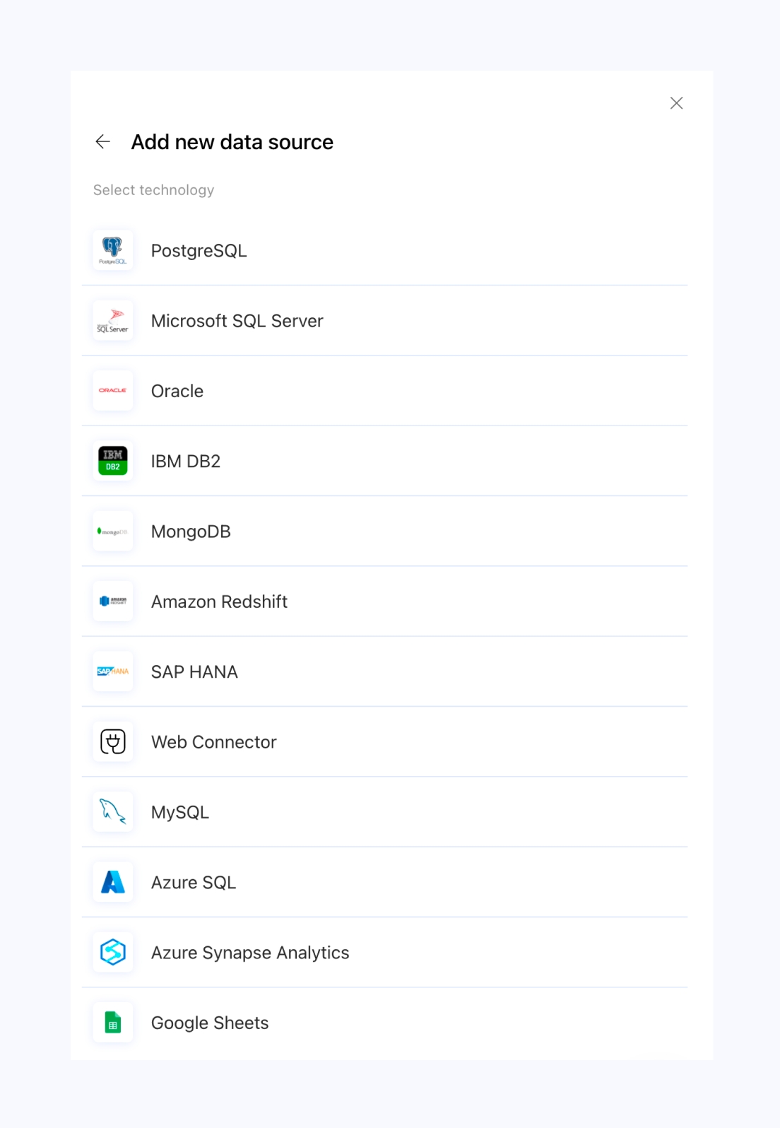 Per farlo, seleziona Google Sheets nel menu Add new data source: