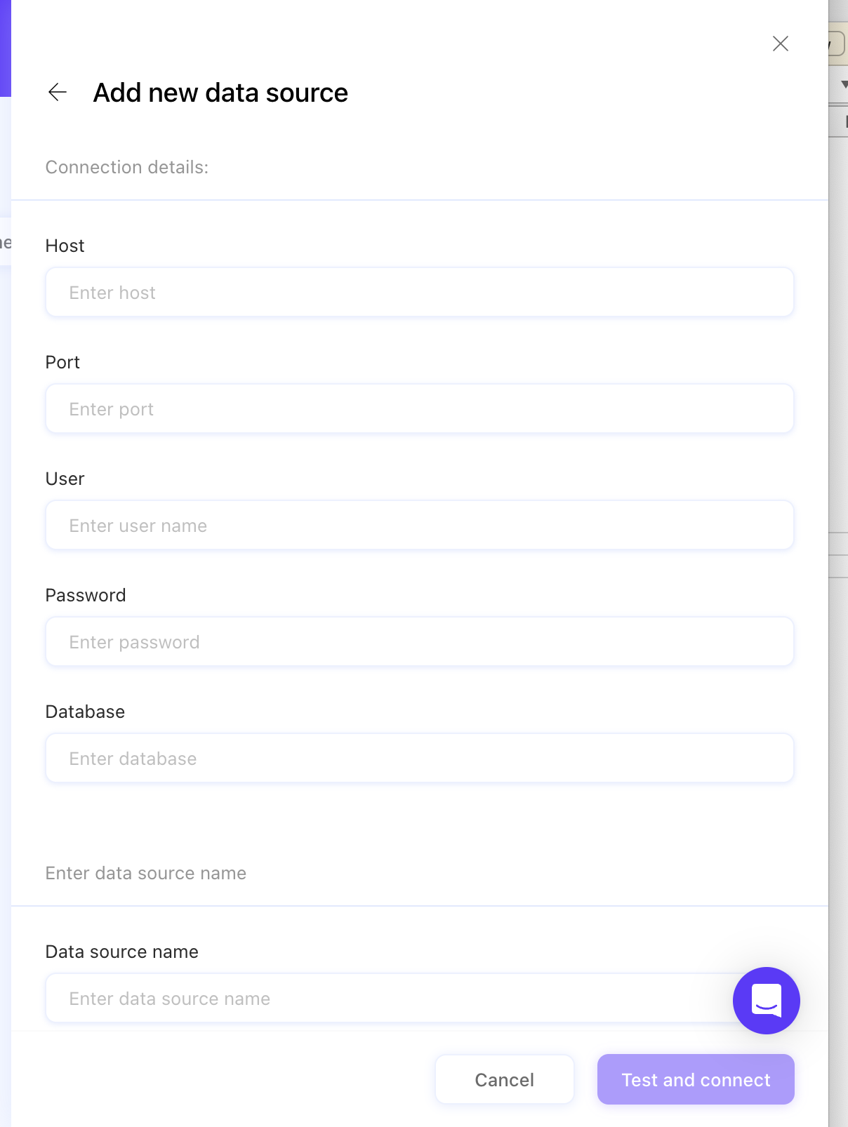 Se non hai nessuna fonte dati connessa, ti verrà richiesto di aggiungere la prima fonte dati al tuo progetto.