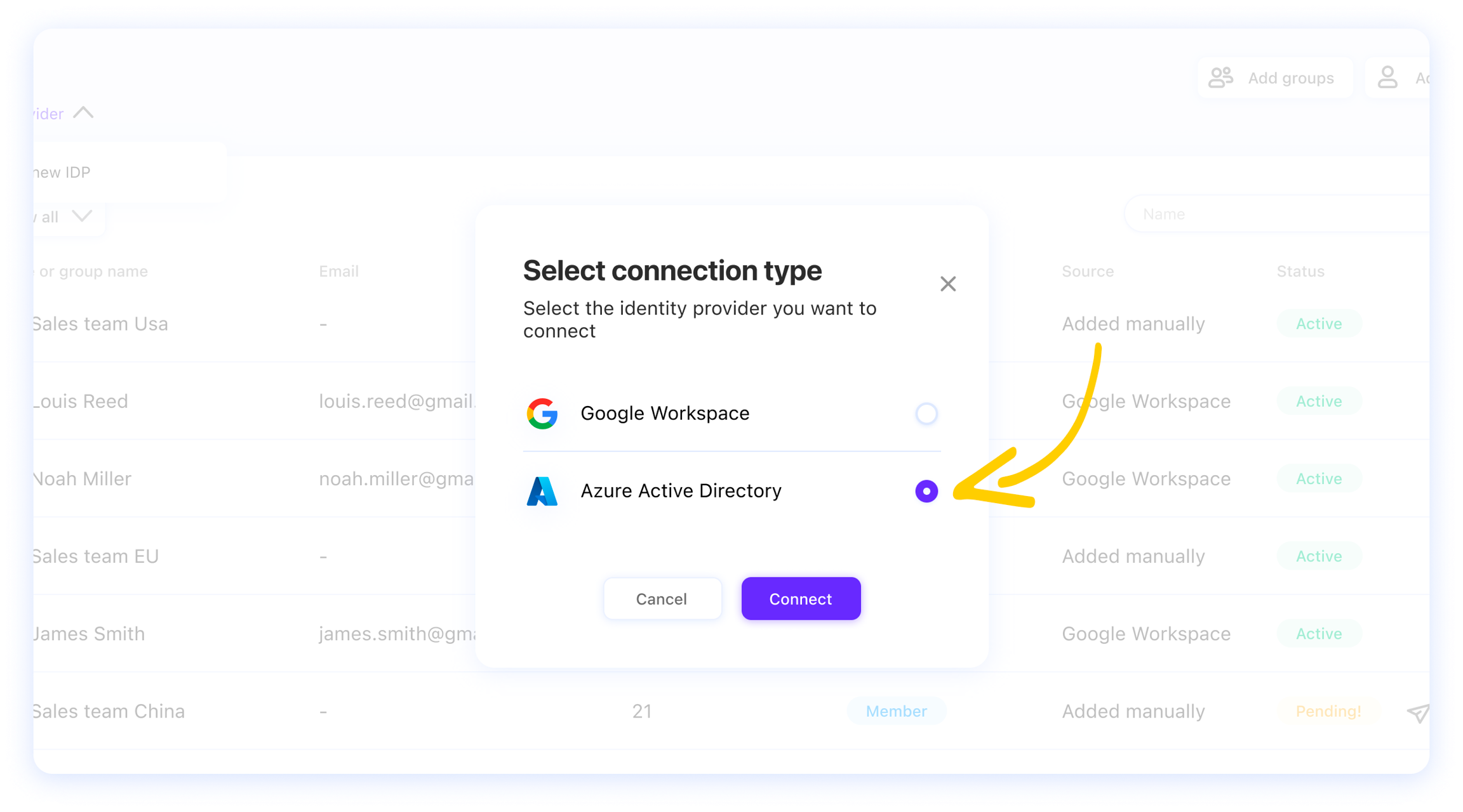 Gli Identity Provider possono essere utilizzati anche per creare nuovi Gruppi.
