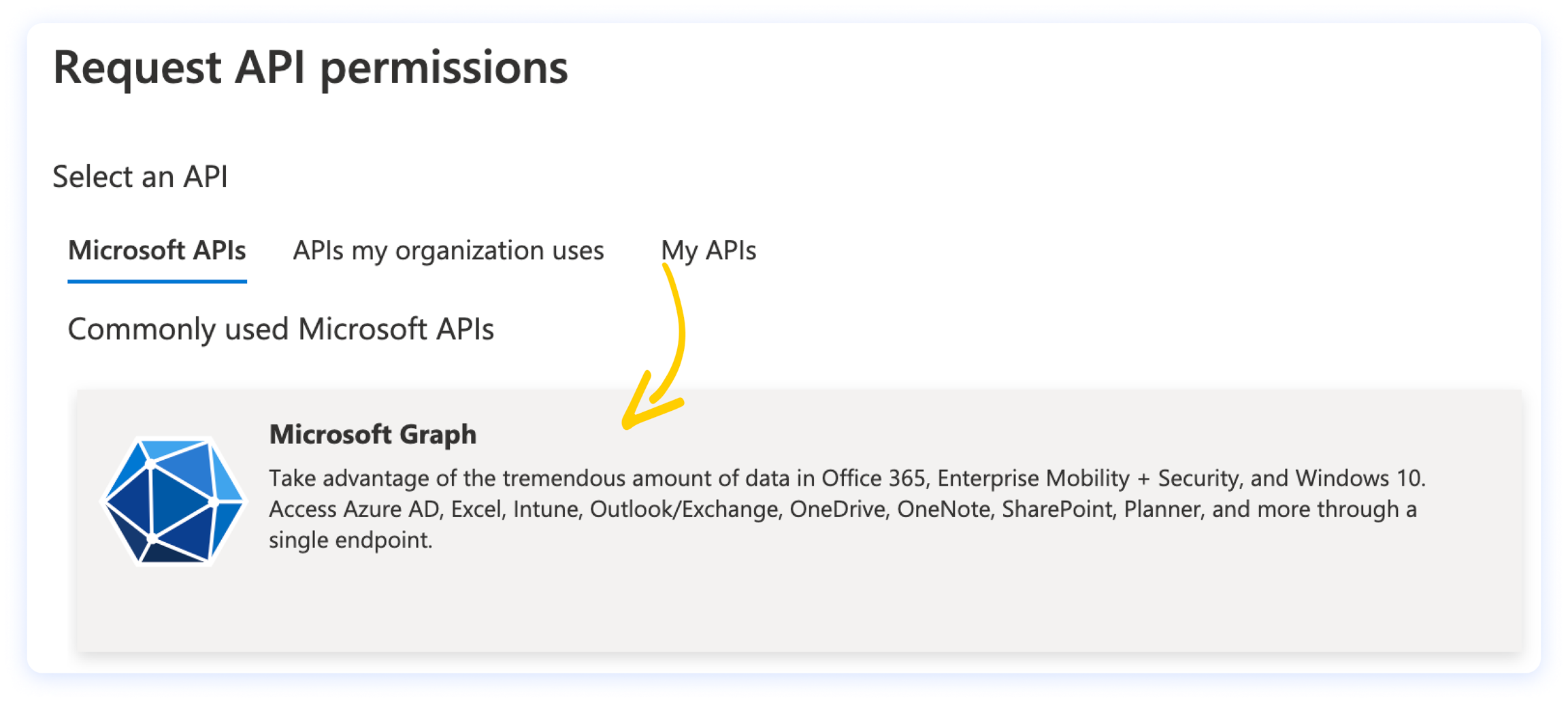 Ora clicca sul banner di Microsoft Graph.